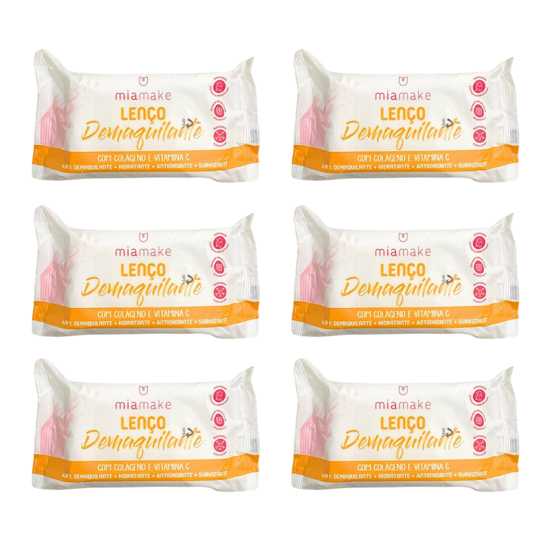 KIT - LENCO DEMAQUILANTE COLAGENO + VITAMINA C 4 EM 1 - 6 UNIDADES