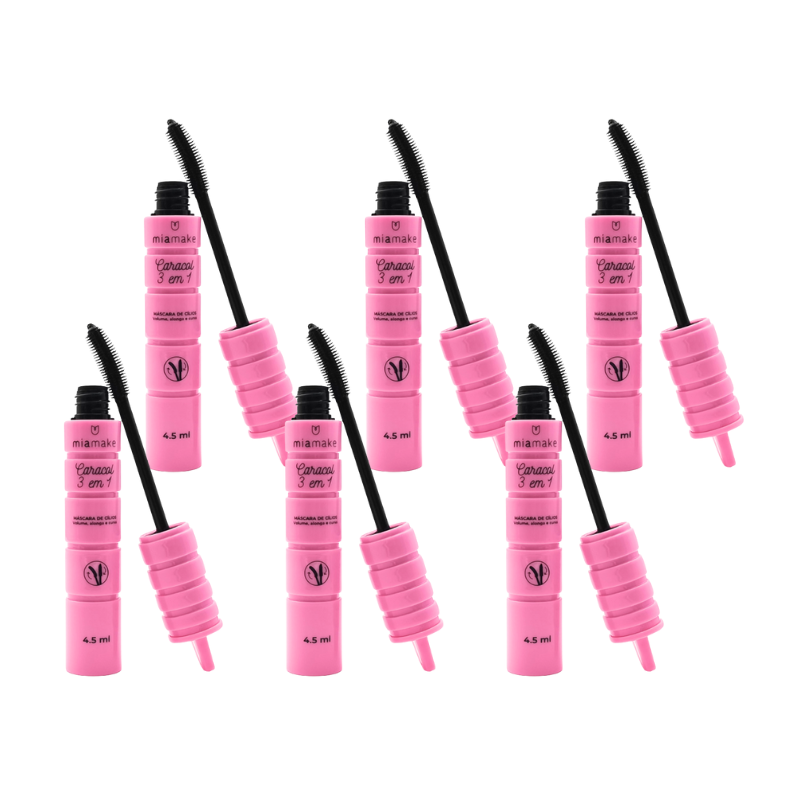KIT - MASCARA CARACOL 3 EM 1 MIA MAKE - 6 UNIDADES