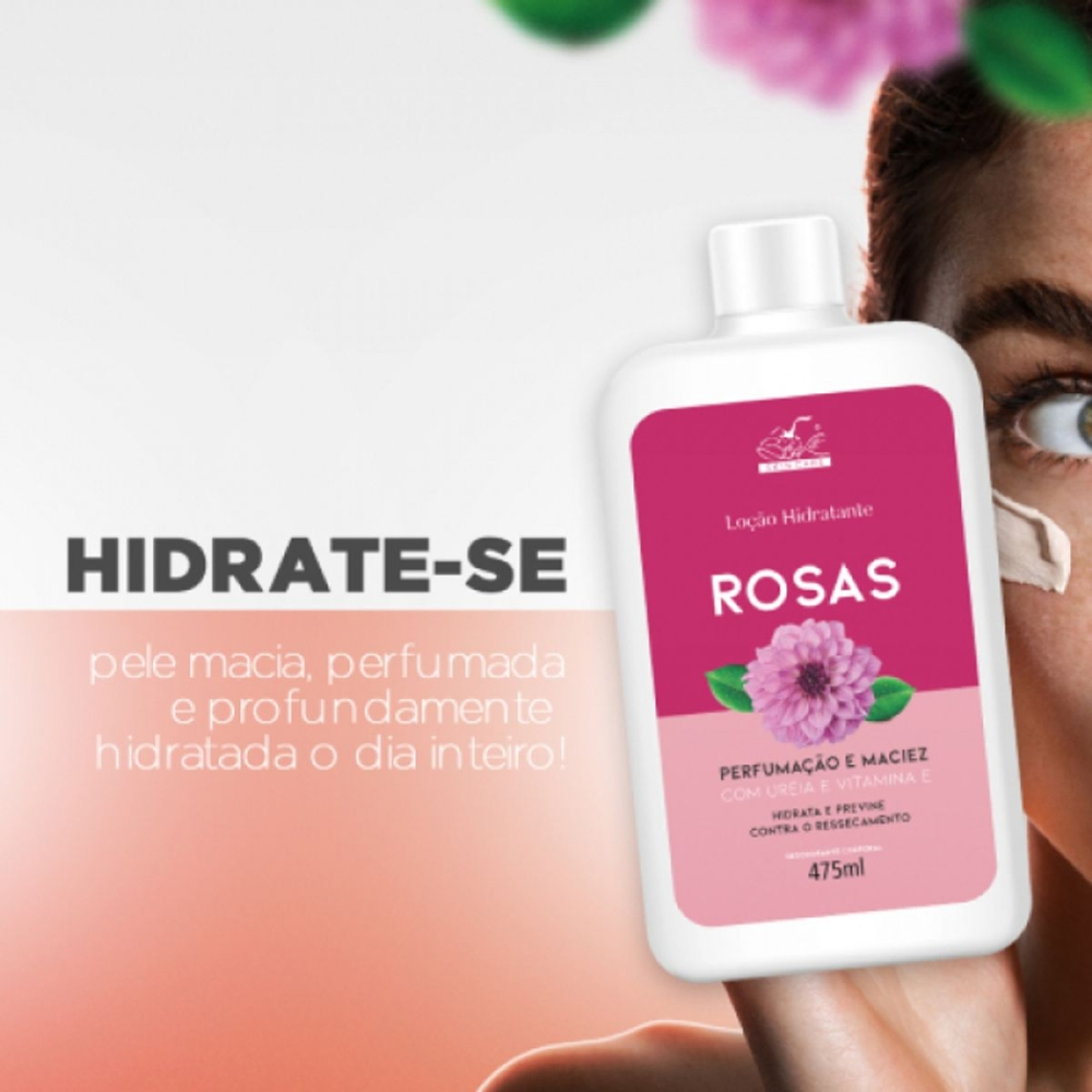 Benefícios: Hidratação intensa e duradoura, perfumação suave e delicada de rosas, ação antioxidante, previne o ressecamento, garante toque macio, textura leve de rápida absorção.