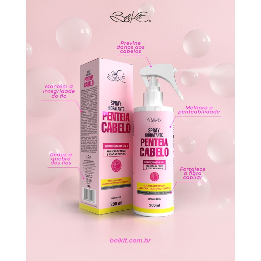 O SPRAY PENTEIA CABELO 200ML BELKIT da MIBELLA é a solução perfeita para desembaraçar e hidratar seus fios, proporcionando maciez e brilho instantâneos.